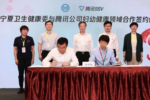 2022-11-10 8月25日,宁夏回族自治区卫生健康委与腾讯科技(深圳)有限公司(以下简称“腾讯公司”)妇幼健康领域合作签约仪式在北京腾讯总部大厦举行。