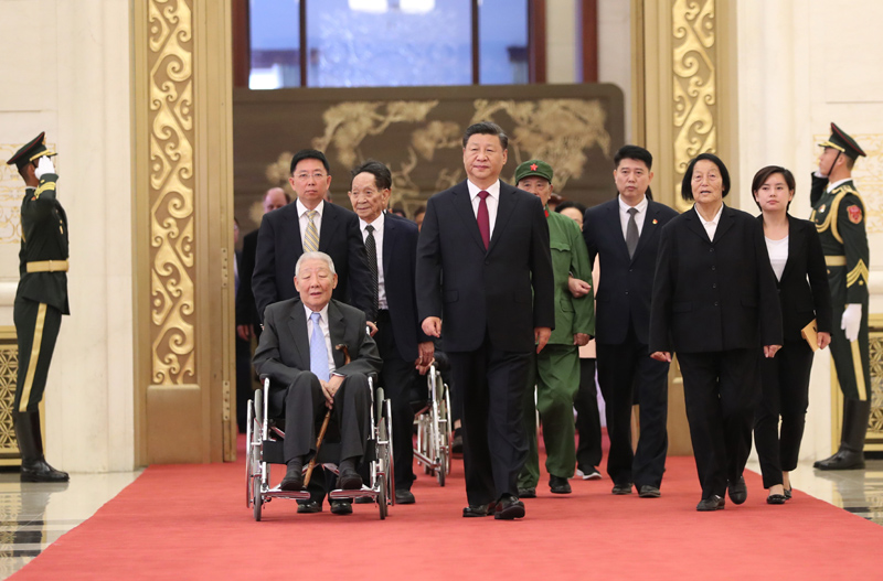 9月29日,中华人民共和国国家勋章和国家荣誉称号颁授仪式在北京人民大会堂金色大厅隆重举行。中共中央总书记、国家主席、中央军委主席习近平同国家勋章和国家荣誉称号获得者一同步入会场。