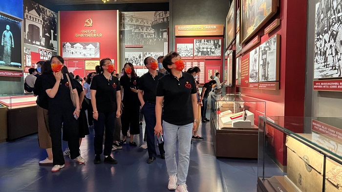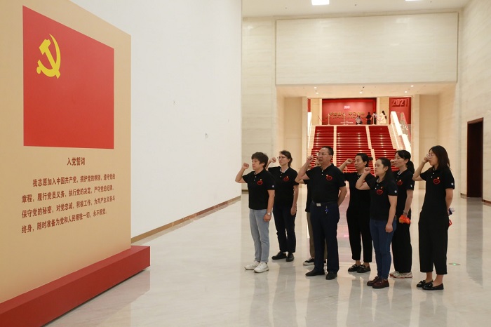 2022年7月1日下午,中国出生缺陷干预救助基金会党支部以“铭记革命历史、赓续红色基因”热烈庆祝中国共产党成立101周年为主题,组织党员、入党积极分子赴中国共产党历史展览馆接受沉浸式思想政治教育洗礼,开展主题党日活动。薛敬洁书记带领党员、入党积极分子认真学习、深入交流;全体党员面向无数革命先烈用生命和鲜血染红的党旗庄严宣誓,决心为党和人民奋斗终生。