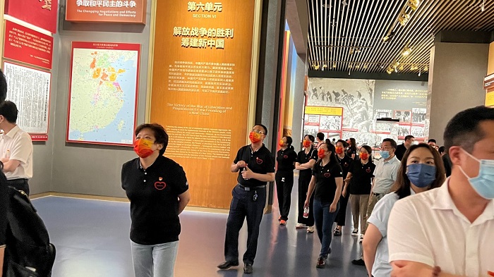 同志们来到庄严肃穆、恢宏壮丽、震撼人心的展厅,仔细观看展览、认真听取讲解、不时驻足思考,以史为鉴、感悟幸福生活来之不易,接受深刻的思想洗礼,激发为中华民族伟大复兴而奋斗的决心和信心。