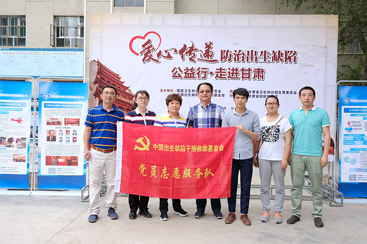 2017年7月20日上午,由国家卫生计生委、中国出生缺陷干预救助基金会共同举办“爱心传递 防治出生缺陷”公益行宣传义诊活动走进革命老区甘肃会宁县,来自中国人民解放军总医院、浙江省儿童医院、北京大学附属第一医院妇产儿童医院的专家团队在当地开展出生缺陷防治宣传义诊活动,基金会党支部的同志和志愿者为当地群众免费发放出生缺陷防治宣传材料和母婴营养物资。