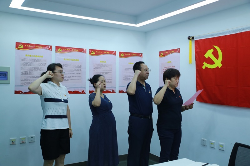 本次活动由基金会党支部书记、秘书长薛敬洁同志主持。薛敬洁、国雷霆、王明丽、孙琰琼等党员面对党旗庄重宣誓,重温入党誓词、坚守初心使命。于海洋、张明明、王可欣、谷敬涛等入党积极分子列席会议,见证党员过“政治生日”,共同庆祝中国共产党成立99周年,祝福社会主义伟大祖国更加繁荣昌盛。