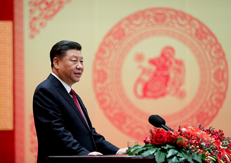 1月23日,中共中央、国务院在北京人民大会堂举行2020年春节团拜会。中共中央总书记、国家主席、中央军委主席习近平发表讲话。