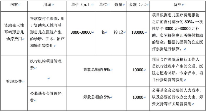 本项目预算200000元,主要用于资助患者及必要的执行管理费,详细预算如下: