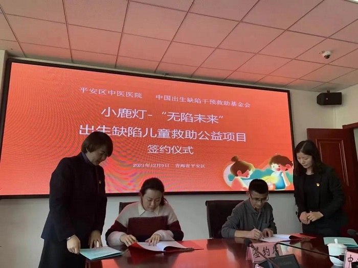 中国出生缺陷干预救助基金会与平安区中医医院签订项目合作协议,双方将在今后一年中,为平安区符合救助条件的出生缺陷患儿开展救助合作。