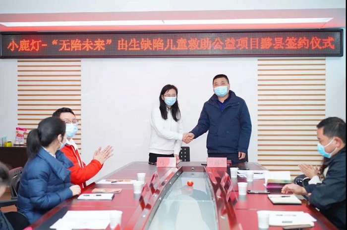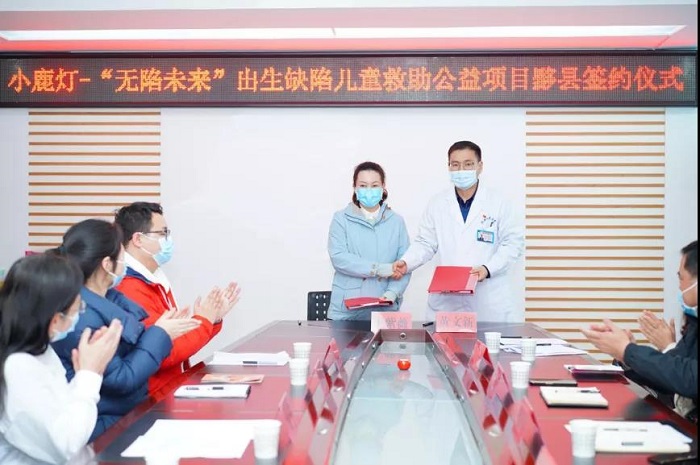 中国出生缺陷干预救助基金会项目部主任王紫薇代表基金会与黄山市人民医院黟县分院签订了小鹿灯-“无陷未来”项目合作协议。