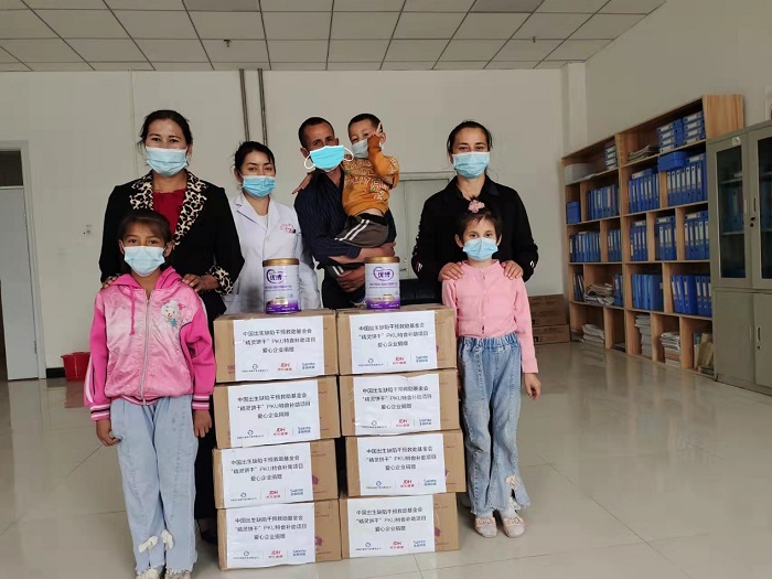 由圣桐营养香港有限公司捐赠1100罐圣元优博特殊医学用途婴儿氨基酸代谢障碍配方食品,用以支持新疆维吾尔自治区和田、喀什、阿克苏和巴州4个地州103名苯丙酮尿症(PKU)患儿3个月的特食需求,已顺利发放至患儿手中。