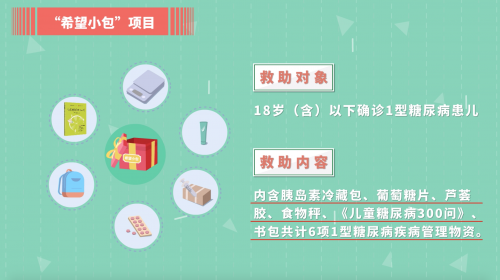 在线上展播的视频中,我们看到2020年糖尿病干预救助专项基金积极开展儿童糖尿病科普知识宣教,为儿童糖尿病贫困家庭提供救助和关怀。2020年4月,专项基金完成腾讯公益“儿童糖尿病救助小包”募款与发放工作。线上募集善款2万元,专项基金配捐2万元,为200名儿童糖尿病儿童送去救助小包。截至2020年10月31日,儿童糖尿病救助小包——希望小包已发放给821名糖尿病患儿家庭。