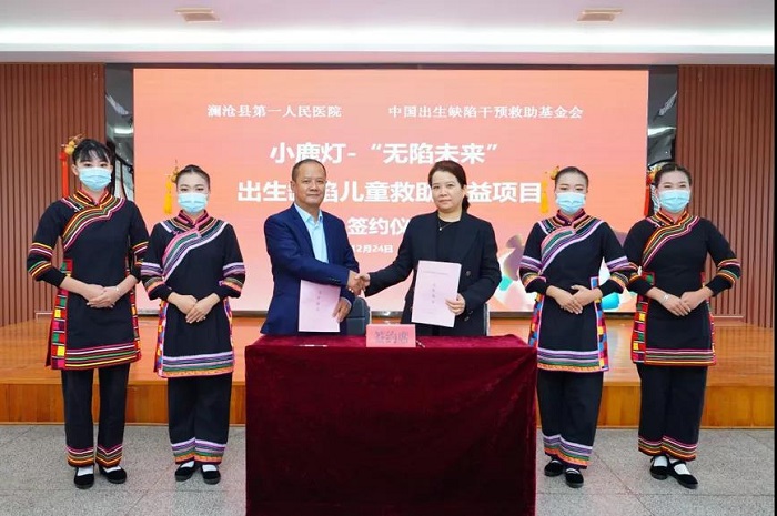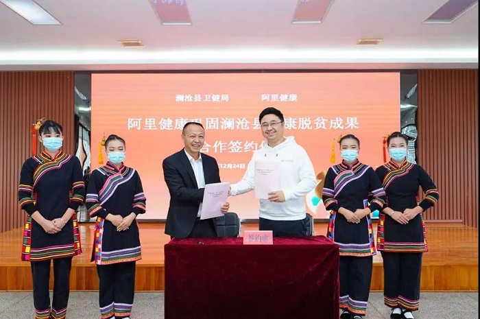 阿里健康公益高级运营专家王书沅与澜沧县卫健局签署了健康脱贫合作协议;中国出生缺陷干预救助基金会救助部主任张明明代表基金会与澜沧县第一人民医院签订了小鹿灯-“无陷未来”项目合作协议。