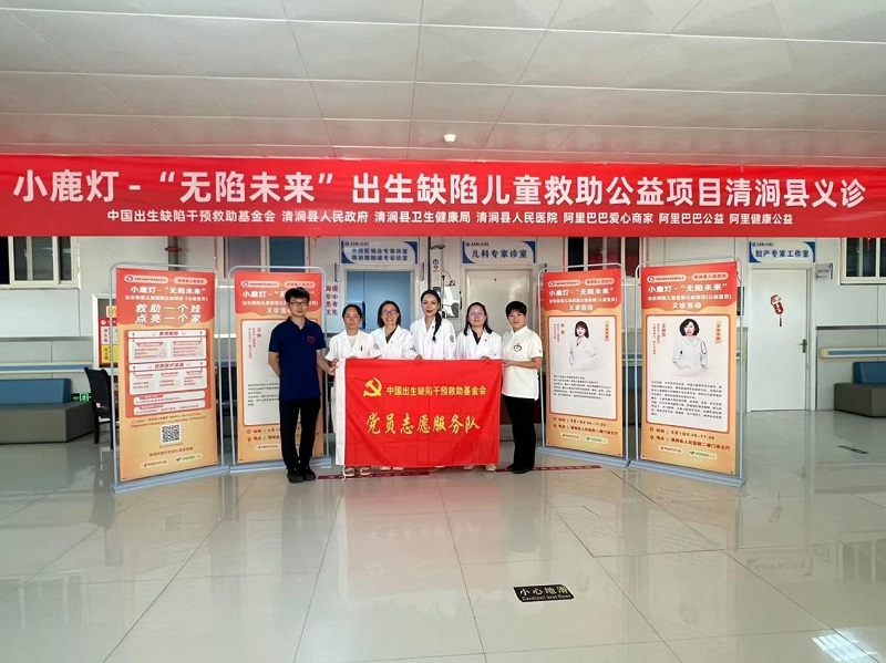 8月1日,小鹿灯“无陷未来”出生缺陷儿童救助公益项目在清涧县举行义诊。本次义诊由8月1日,小鹿灯“无陷未来”出生缺陷儿童救助公益项目在清涧县举行义诊。本次义诊由中国出生缺陷干预救助基金会、阿里巴巴公益、阿里健康公益主办,清涧县人民政府、清涧县卫健局,清涧县人民医院前期进行患儿筛查和动员,项目组特邀西安市儿童医院儿童保健科专家王丽芳、新生儿科专家王静、神经内科专家李蓓,为17名患儿提供义诊。