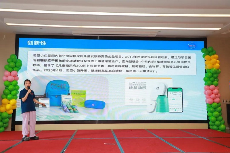 江西省儿童医院今年加入“希望小包”项目医院队伍之中,夏令营活动中,糖尿病干预救助专项基金蒋婷婷老师介绍了儿童糖尿病公益项目的救助计划,分享感人故事。为参加夏令营活动的小糖宝捐赠希望小包救助物品。