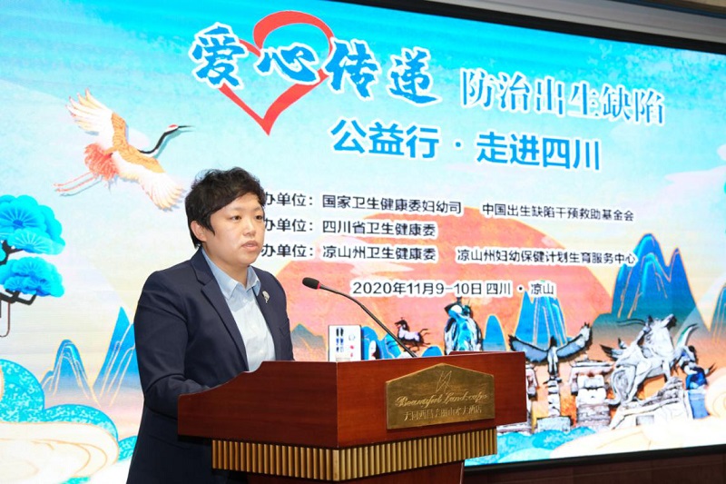2020年11月9日,由国家卫生健康委妇幼司联合中国出生缺陷干预救助基金会主办,四川省卫生健康委承办,凉山州卫生健康委、凉山州妇幼保健计划生育服务中心协办的“爱心传递 防治出生缺陷”公益行走进四川活动在凉山彝族自治州举行。
