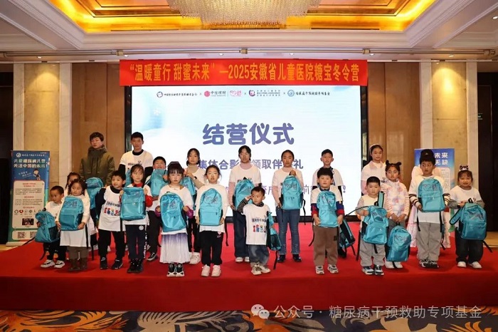活动最后一个环节,由糖尿病干预救助专项基金项目主管蒋婷婷介绍了专项基金儿童糖尿病公益项目,并为每个参加冬令营的小糖宝们发放“希望小包”。最后,所有参与者在“温暖童行 甜蜜未来”的签到墙前合影留念,孩子们领取了精心准备的伴手礼,脸上洋溢着幸福的笑容。本次冬令营不仅是一次知识的盛宴,更是一次心灵的洗礼,为糖宝们的健康成长注入了新的动力。