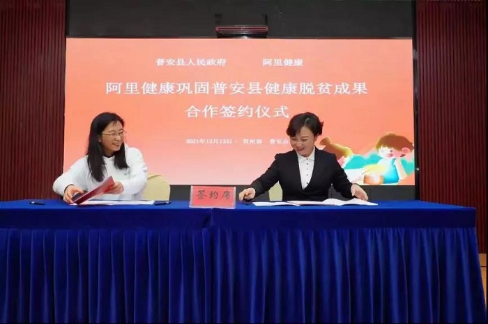 阿里健康资深副总裁马立女士与普安县人民政府签署了健康脱贫合作协议;