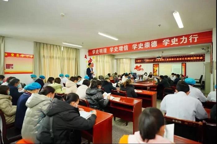 为更好的让当地的工作人员了解项目,帮助患儿获得项目帮助,项目组为当地的妇幼专干进行了项目培训,详细解读了小鹿灯-“无陷未来”项目的救助方式、救助条件、项目内容等等。