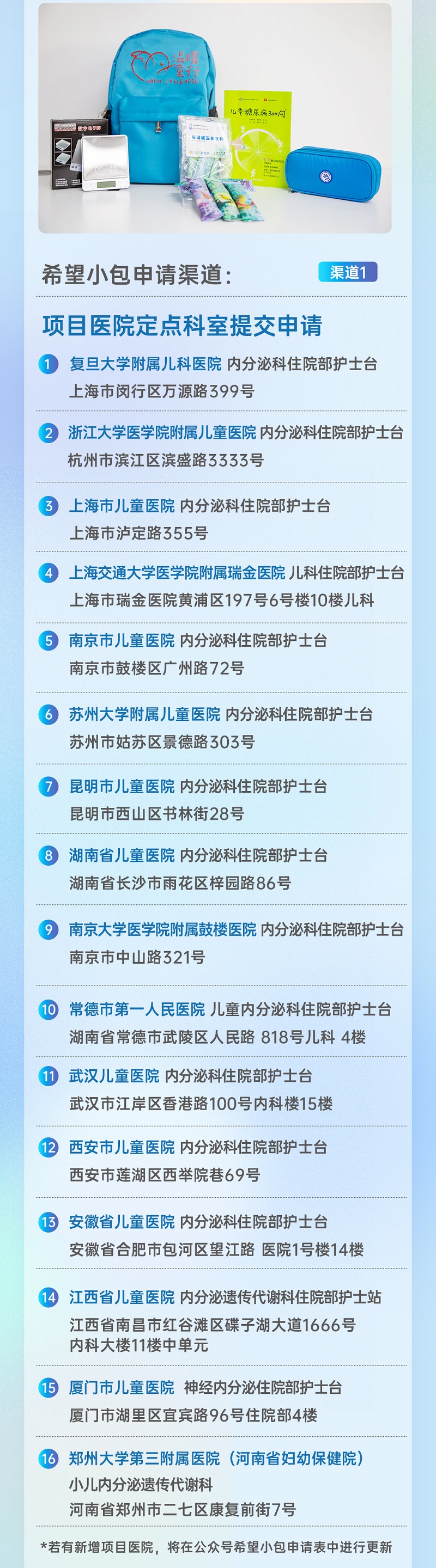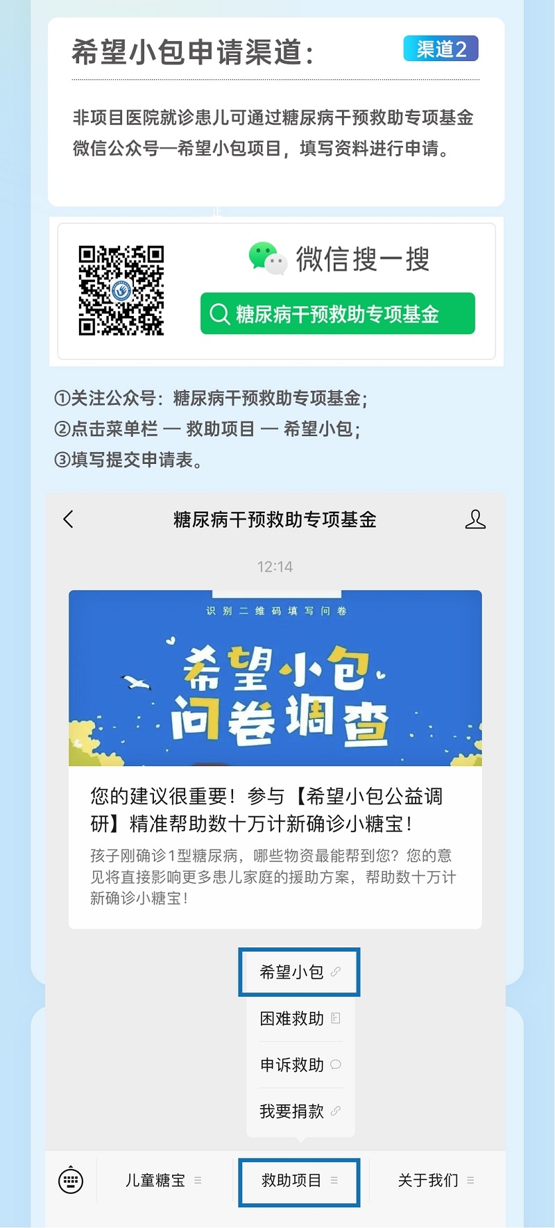 儿童糖尿病“希望小包”申请渠道: