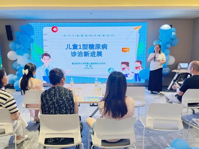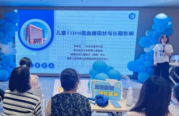 活动首日,重庆大学附属儿童医院内分泌科朱高慧主任在开营致辞中强调:“1型糖尿病患儿需要终身管理,但科学的治疗和全社会的支持能让他们拥有与健康儿童一样的未来。”随后,专家团队围绕疾病管理展开系列讲座:朱高慧主任解析《儿童T1DM低血糖现状与长期影响》,周莛医师分享《1型糖尿病治疗新进展》,糖尿病健康教育师代红梅则通过《碳水的快乐》生动讲解饮食管理技巧,帮助家长和孩子们掌握控糖要点。